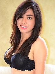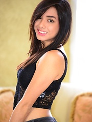 Zoe Martinez strips her jeans off to reveal her black bra and panties on her all natural body
