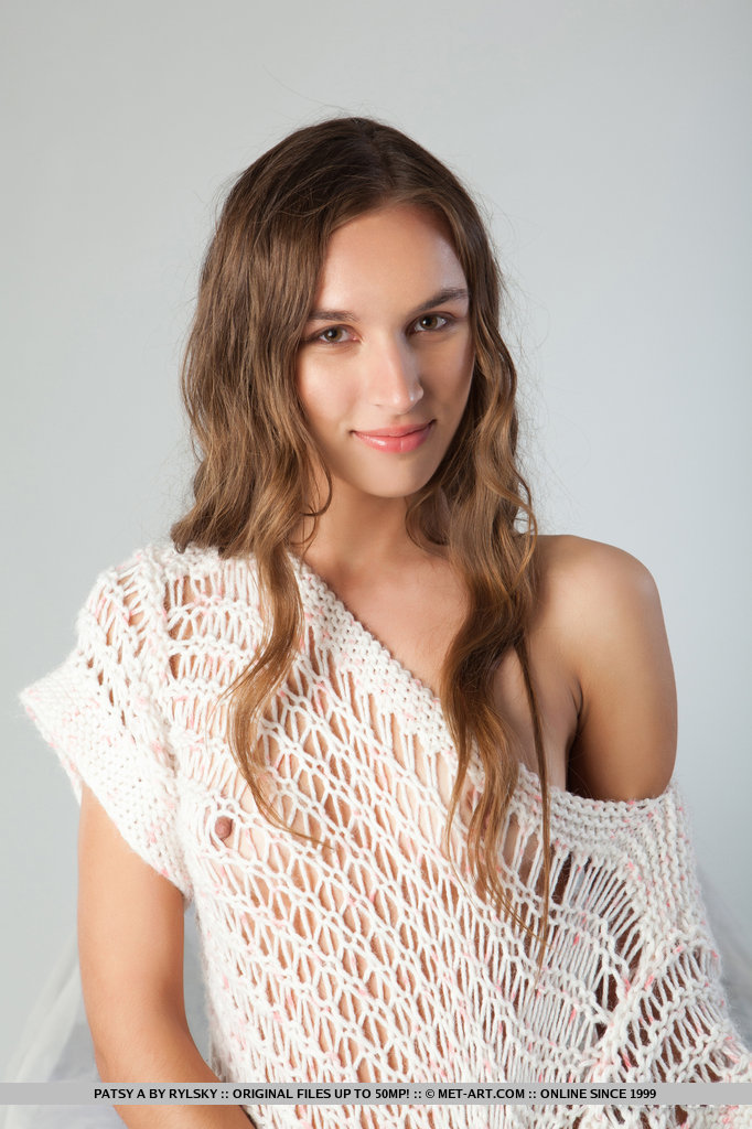 Smooth fair skin, puffy brown nipples, slim and slender body, and an alluring charming face makes Patsy the perfect centerpiece inside this all white studio.